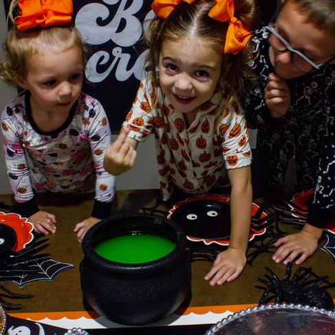 A bubbling “slime punch” that glowed neon green in a plastic cauldron. (The hit of the night and Leo's play date the next day)
